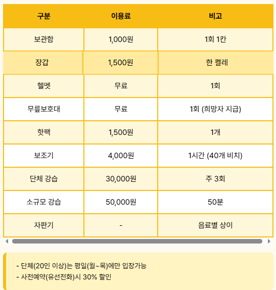 이용 요금에 장비 대여가 포함되어 가성비가 매우 높습니다.