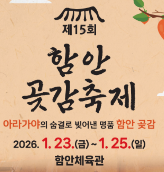 함안곶감축제 날짜는 2026년 1월 23일부터 25일까지 총 3일간 진행됩니다.