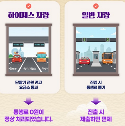 하이패스·일반차량 별 통행료 무료 이용 방법