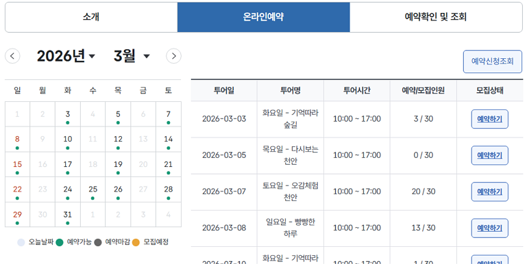 2026 천안시티투어는 공식 홈페이지를 통한 사전 예약이 기본입니다.