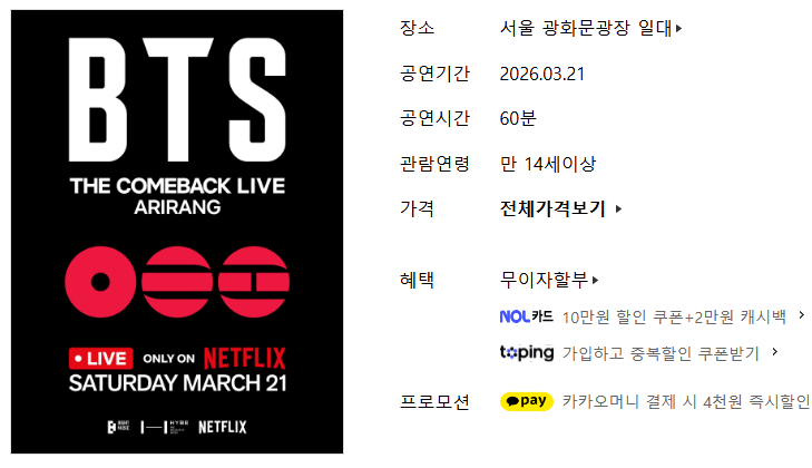 BTS 광화문 공연은 만 14세 이상 관람가로 안내되어 연령 확인이 필요합니다.