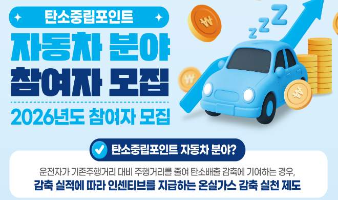 2026 탄소중립포인트 자동차 제도는 주행거리 감축을 통해 온실가스 배출을 줄이는 정책입니다.