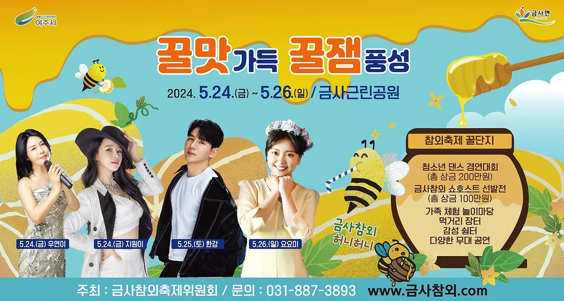 이번 축제의 주제는 ‘꿀맛 가득, 꿀잼 풍성’이에요. 이름만 들어도 정말 흥미진진하지 않나요?