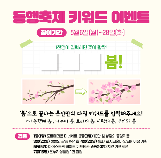동행이벤트 메뉴를 통해서 2024 동행축제에서 진행하고 있는 각종 이벤트의 내용과 기간, 경품 등을 알아볼 수 있으니 직접 확인해보시는 것도 좋을 것 같습니다.