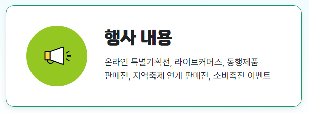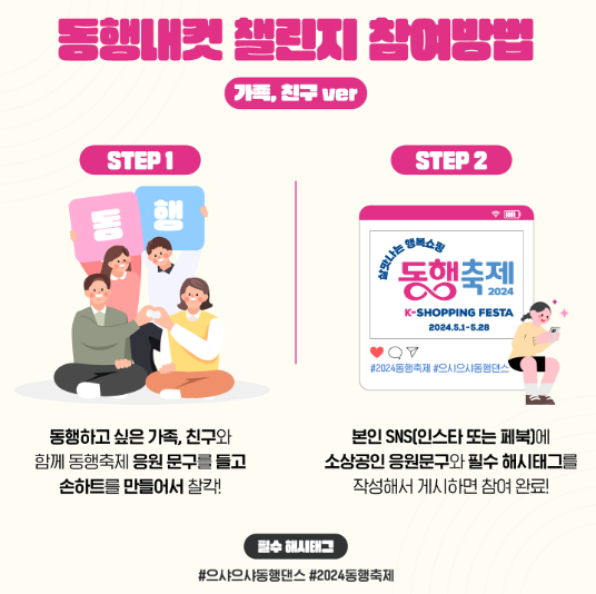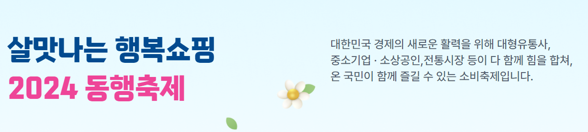 중소벤처기업부에서 주관하는 2024년 동행축제는 중소기업, 소상공인과 온 국민이 함께 온오프라인을 통해 착한 가격으로 쇼핑을 즐길 수 있습니다.