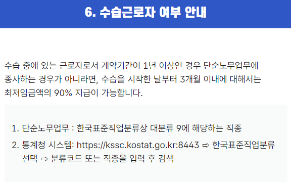 마지막으로, 수습근로자에 대한 임금 지급 기준입니다.