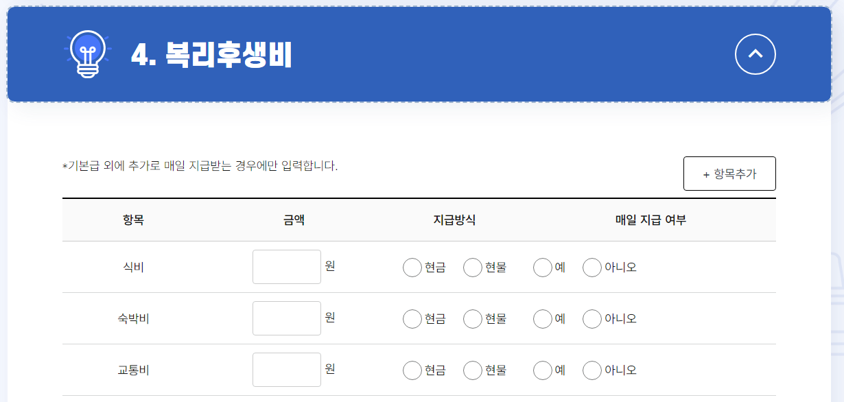 단, 현물로 지급되는 복리후생비는 이에 해당되지 않습니다.