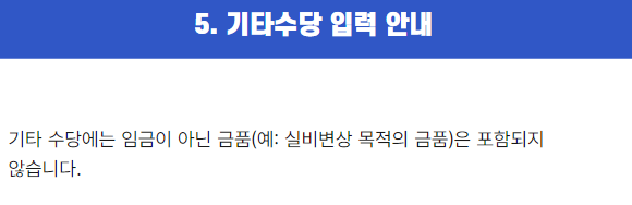 기타 수당에 대해서는, 실비변상 목적의 금품 등 임금이 아닌 금품은 기타 수당에 포함되지 않는다는 점을 알아두는 것이 중요합니다.