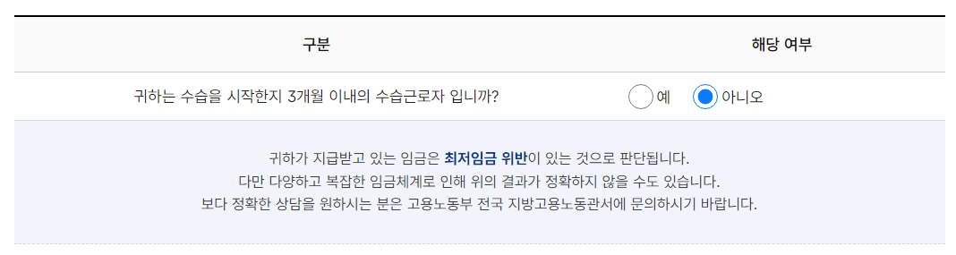 이처럼 손쉽게 본인의 2024년 최저임금 기준을 충족하는지 확인하실 수 있으니 한번쯤 이용해보시는 것이 어떨까 싶습니다.